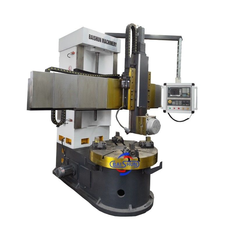 China Warmverkauf Mehrzweck-CNC-Vertikaldrehmaschine eignet sich für die Verarbeitung von Eisenmetallen, Nichteisenmetallen und teilweise nichtmetallischen Materialien,und konnte die Verarbeitung der Drehung der Endfläche erreichen, inner- und außen silindrische Oberfläche, inner- und außen kreisförmige kegelförmige Oberfläche und Bohr, Ausdehnung, Reaming von Loch.Hydraulischer Gangwechsel und zwei Gangschritt weniger Geschwindigkeitsregelung- Der Arbeitstisch ist manuell mit 4 Kiefern.